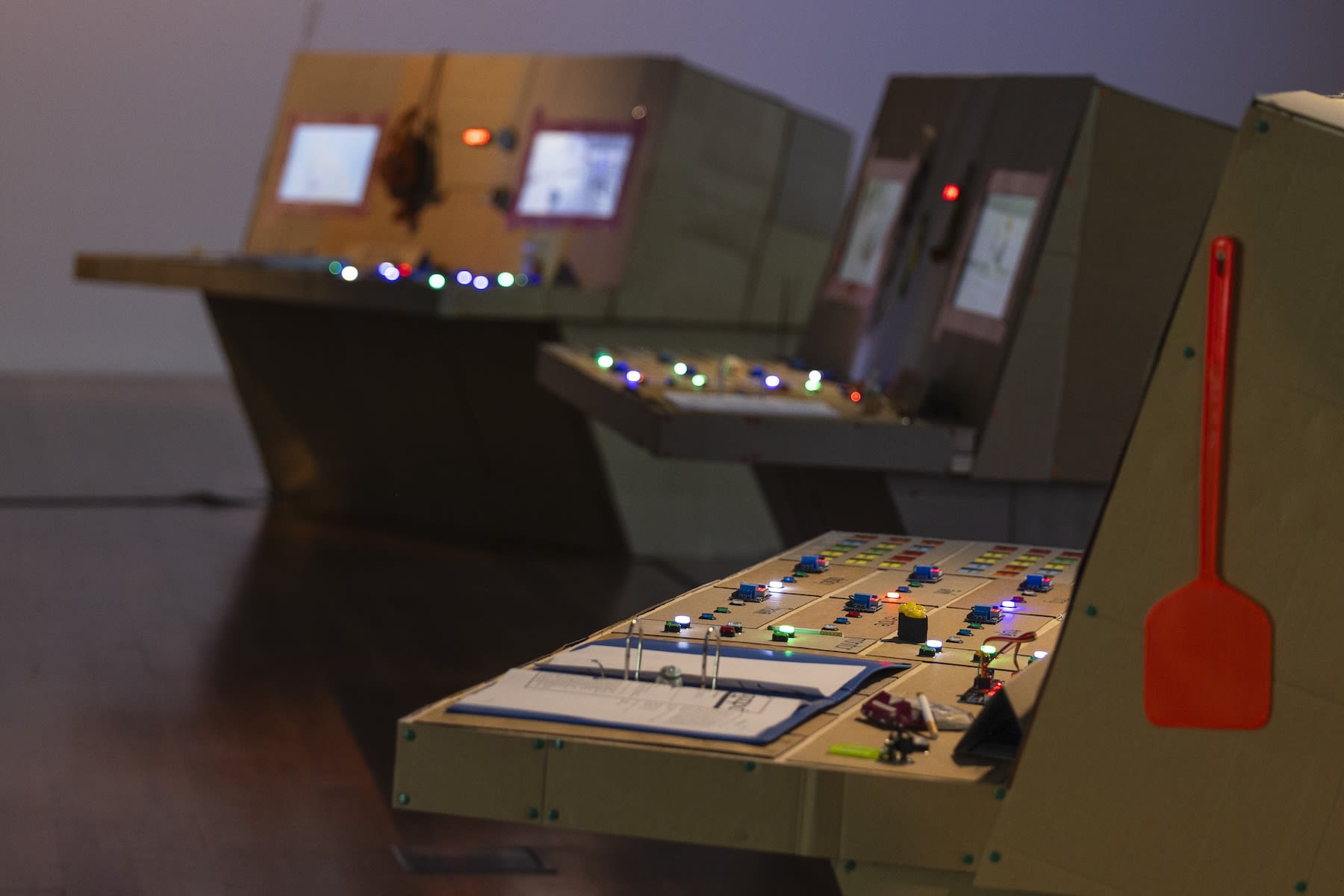 Alongside the video work is a mock mission control which combines Eastern and Western concepts of rocketry and sexual mysticism.